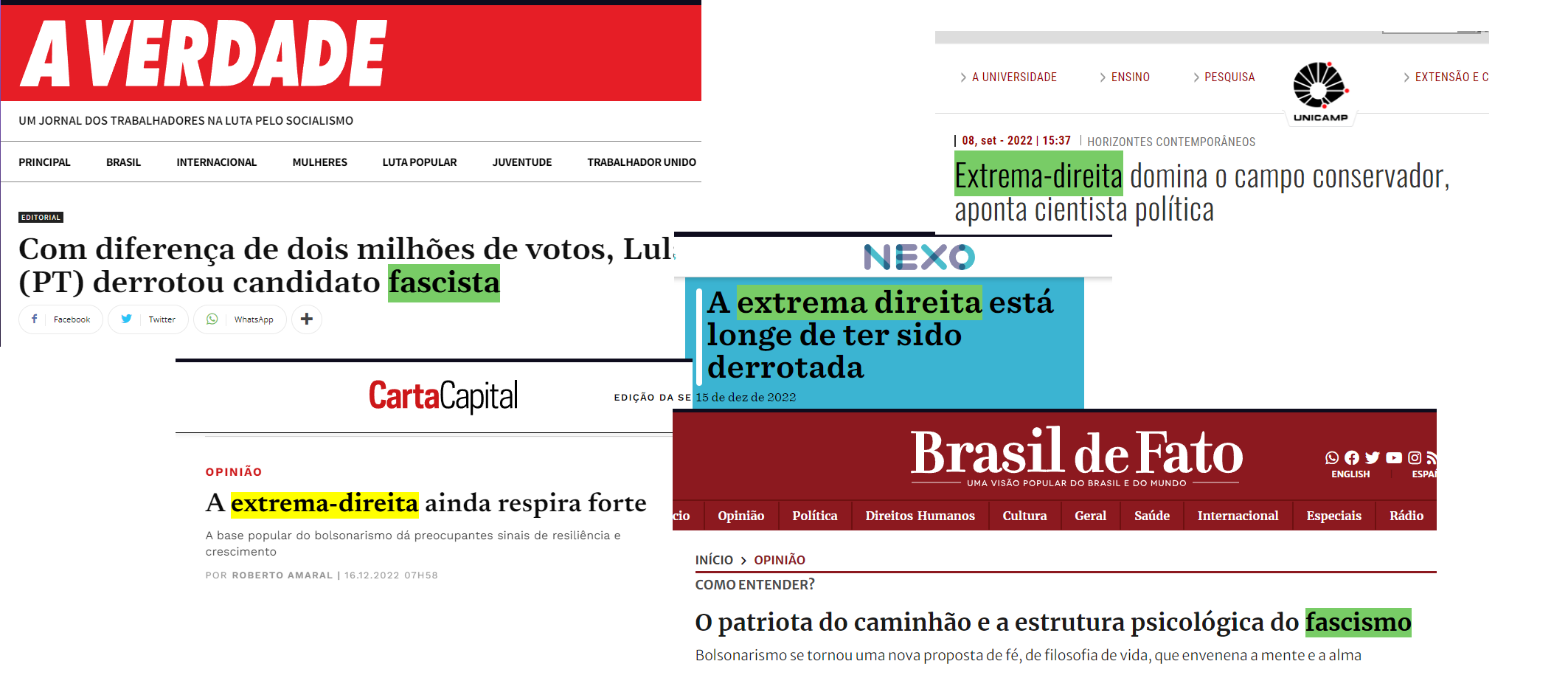 Bolsonaro é fascista? Listamos 13 frases do candidato para reflexão. Brasil de Fato, 2018. Disponível em: https://www.brasildefato.com.br/2018/10/17/bolsonaro-e-fascista-listamos-13-frases-do-candidato-para-reflexao. Acesso em: 16/12/22.