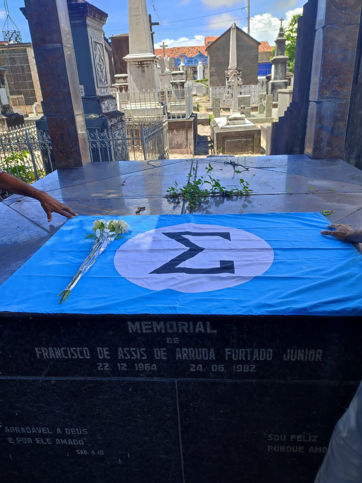 Logo em seguida os nossos companheiros se direcionaram ao mausoléu da companheira Dª Maria do Carmo Moreira de Sousa, que militou nas ostes da Ação Integralista Brasileira, sendo perseguida pelo DOPS do Estado Novo, por possuir livros de reuniões e atas com nomes importantes da AIB do Ceará. Maria do Carmo refugiou-se no Boqueirão de Ico, rincão fechado da Região do Cariri. Voltou a Fortaleza em 1945 e, novamente, alistou-se nas ostes integralistas do Partido de Representação Popular. Em 1955, Maria do Carmo ajudou na campanha presidencial de 1955 à favor de Plínio Salgado: “Tinha eu uns oito anos de idade em 1955. Mamãe era uma integralista dedicada desde os anos 1930. Quando eu estava brincando ou sem fazer nada, minha mãe me chamava com uma lata de grude, pincel e uns cartazes enormes de Plínio Salgado e do PRP, para eu ajudar ela a pregar os cartazes mais ela. Naquela época não sabia muito bem o que era Integralismo, porém, aqueles homens e mulheres deixavam uma forte impressão de serem pessoas de grande moral e respeito. Quem diria que 70 anos mais tarde estaria vestindo a camisa verde e seguindo os passos que minha mãe seguiu e que meu filho segue desde 2017”, relato do companheiro Francisco Carlos de Lima, pai do Presidente Provincial da FIB no Ceará.